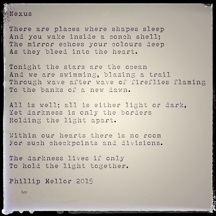 Nexus September 8, 2015 / Phillip Mellor / Leave a comment Not much new writing from me of late. Life has a way of stepping in… Projects have been placed on hold, yet the muse stirs again…