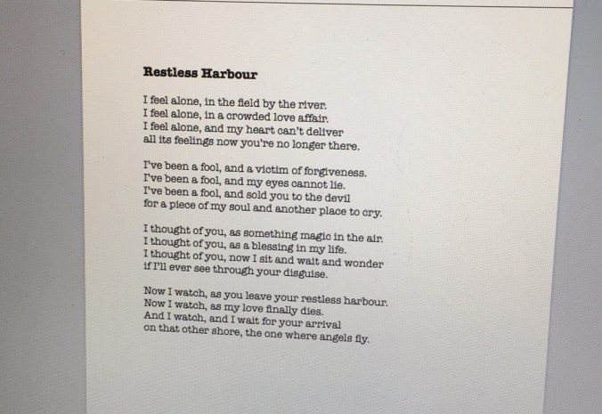 It’s been a productive day… As well as cooking a Thai Green curry for my folks and myself I have finished the first draft of the first volume of the Poetrybox series! I am very happy with it! I hope to have more news soon… Until then, here’s a screen shot of one of the poems.